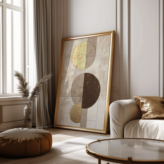 Premium Abstract Circle Poster – Gold and Earthy Tones Wall Art - Digital Print