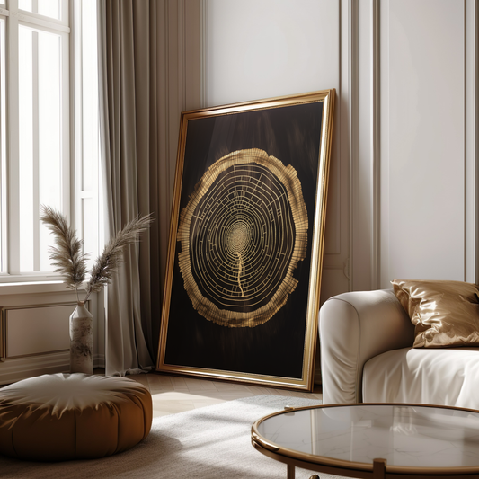Golden Tree Rings Poster – Nature-Inspired Minimalist Wall Art