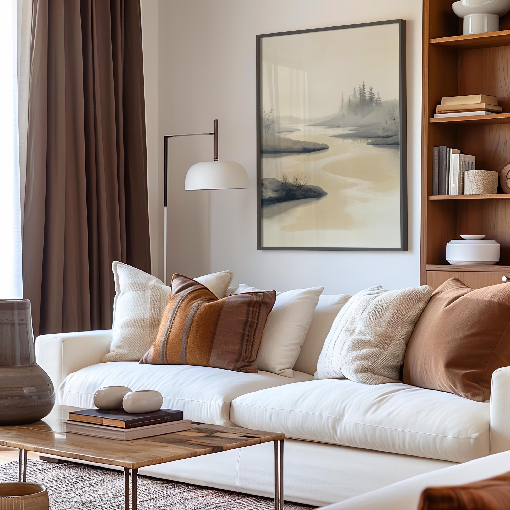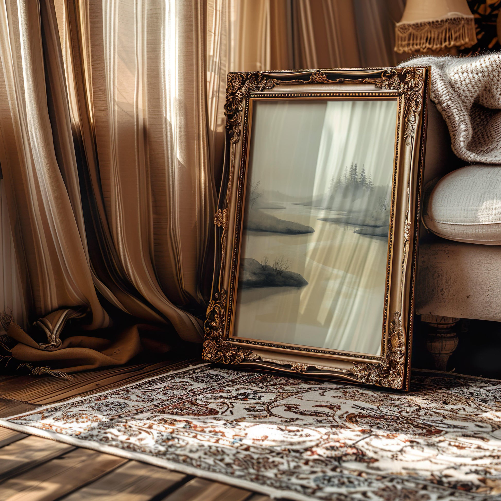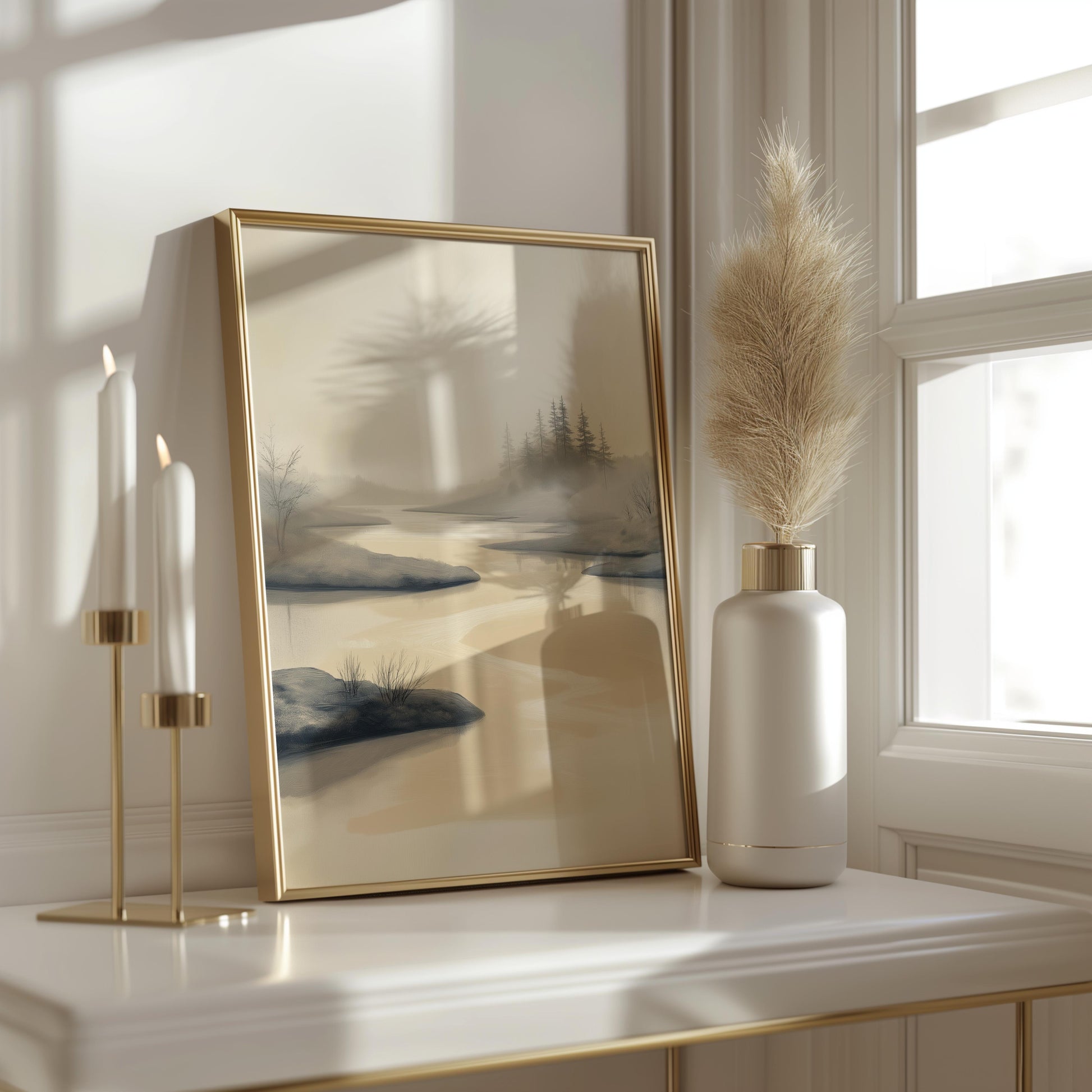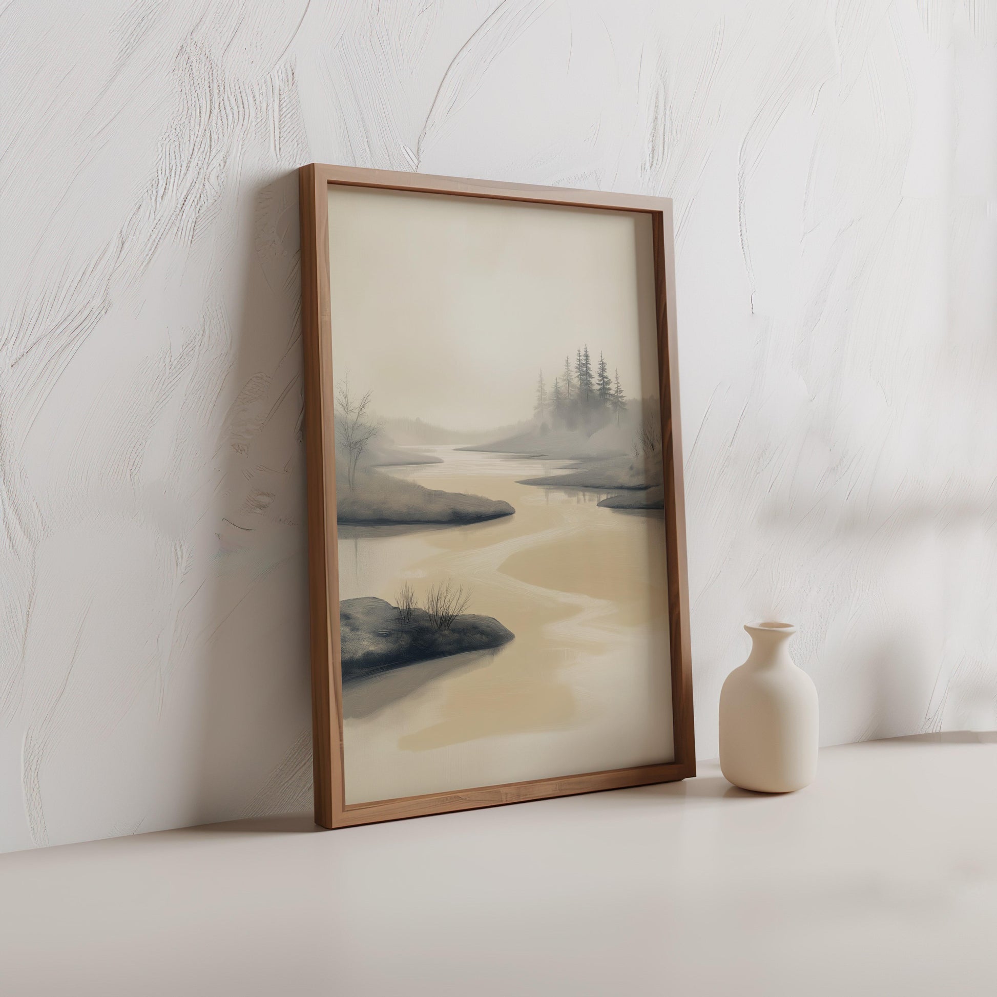 Bring the beauty of nature indoors with this dreamy misty forest and river poster, perfect for adding a serene touch to your space.