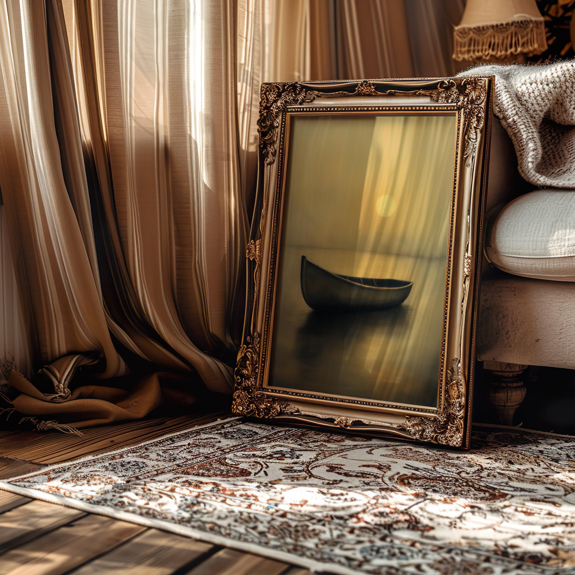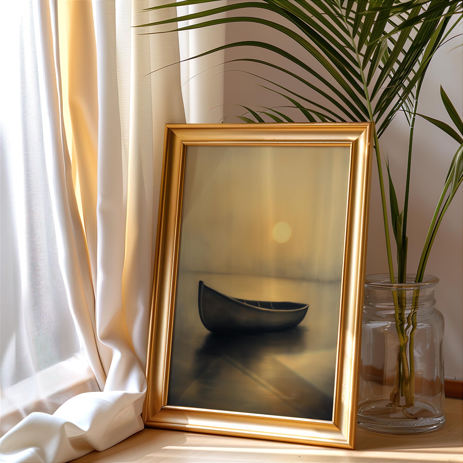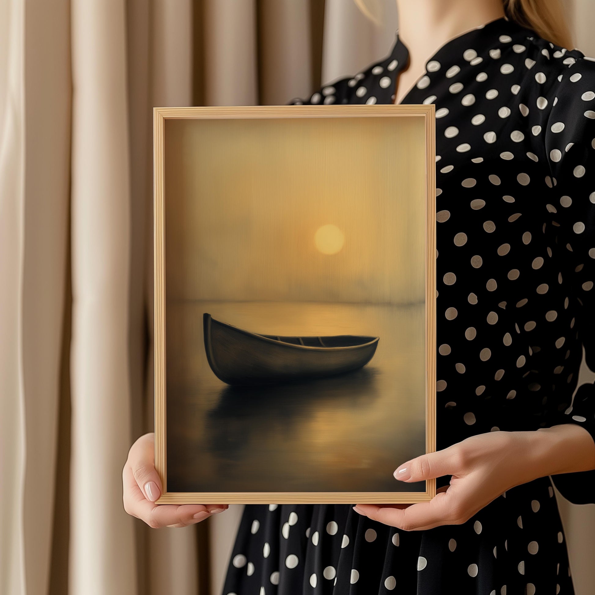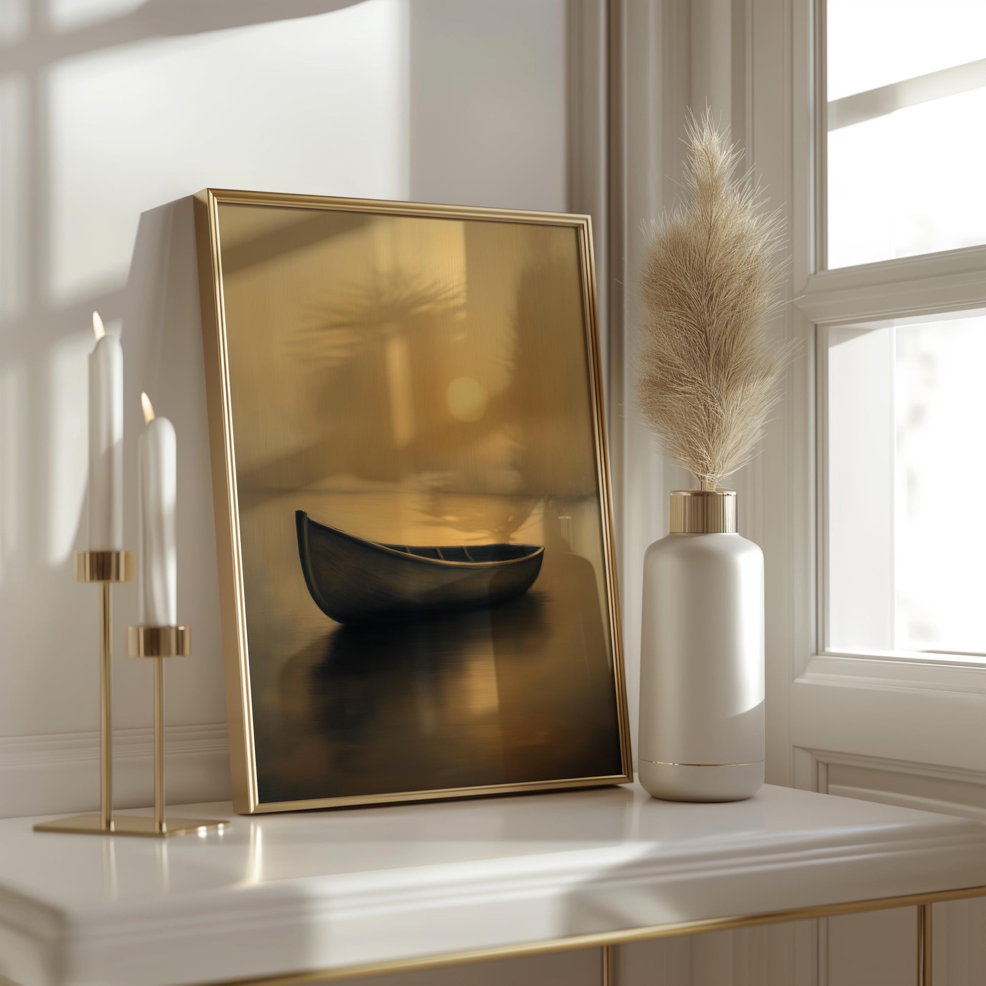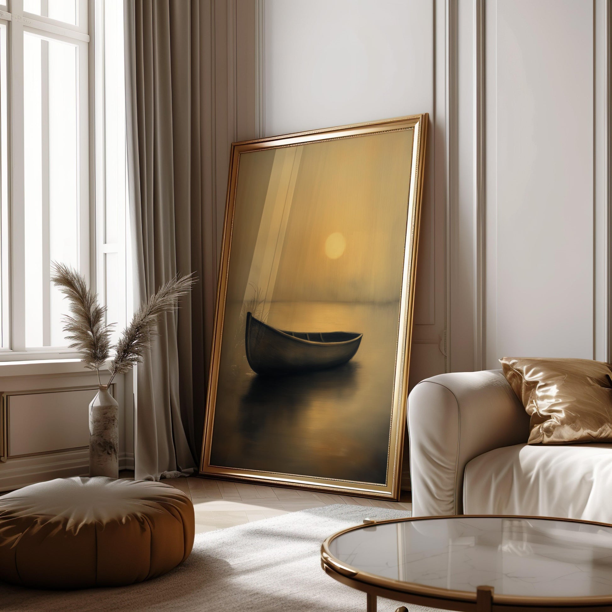 Premium Golden Canoe Poster – Minimalist Sunset Wall Art - Digital Print