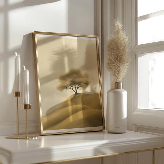Serene Golden Hill Tree Art Poster - Wall Art - Digital Print