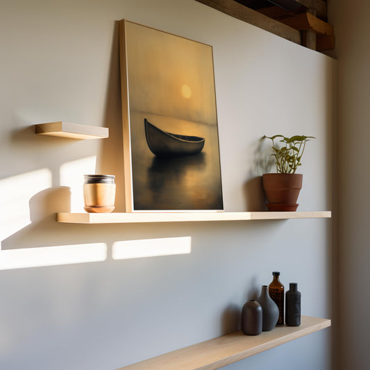 Premium Golden Canoe Poster – Minimalist Sunset Wall Art - Digital Print